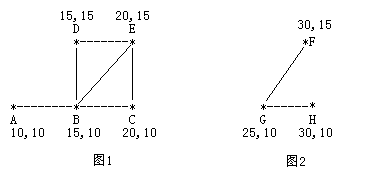 农民John的农场里有很多牧区。有的路径连接一些特定的牧区。一片所有连通的牧区称为一个牧场。但是就目前而言,你能看到至少有两个牧区不连通。现在,John想在农场里添加一条路径 ( 注意,恰好一条 )。对这条路径有这样的限制:一个牧场的直径就是牧场中最远的两个牧区的距离 ( 本题中所提到的所有距离指的都是最短的距离 )。考虑如下的两个牧场,图1是有5个牧区的牧场,牧区用“*”表示,路径用直线表示。每一个牧区都有自己的坐标:
