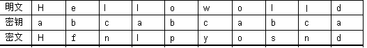 例如,明文M=Helloworld,密钥k=abc时,密文C=Hfnlpyosnd。