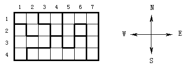 室内的墙被定义两次: 例如方块(1,1)中的南墙也被位于其南面的方块(2,1)定义了一次。