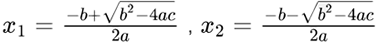 x2=(-b-sqrt(b*b-4*a*c))/(2*a);